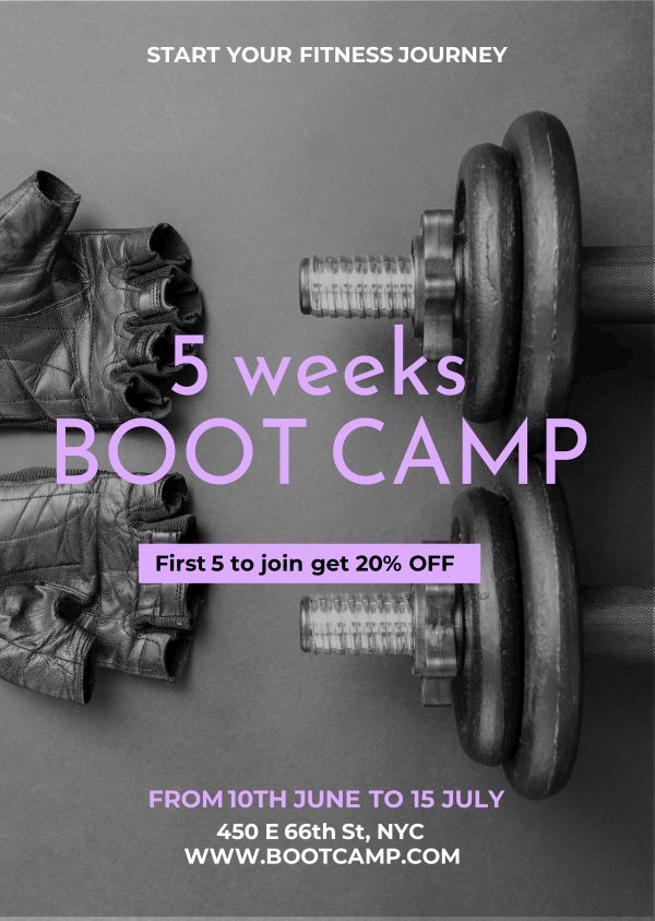 Boot Camp Discount is from our collection of fitness templates. You can download this poster design as-is or customize it to suit your particular needs. Professionally designed to help you capture and engage your audience.
